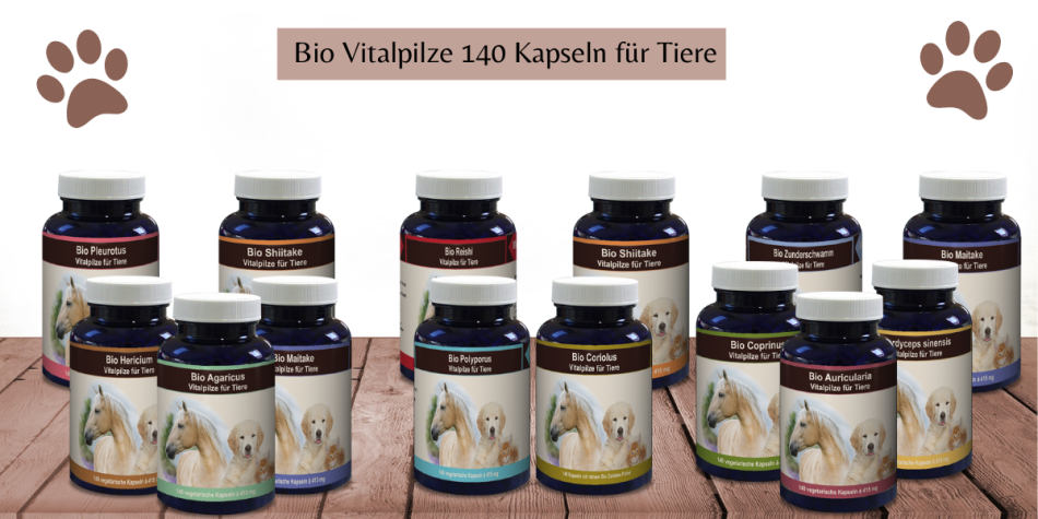 Die Anwendung der Bio Vitalpilze im Futter für Hunde, Katzen, Pferde und Kleintiere ist seit einiger Zeit weit verbreitet. Unsere Vitalpilze haben bedeutende Inhaltsstoffe, die nicht nur die Gesundheit des Menschen, sondern auch die der Tiere fördern. Entscheidend ist dabei die hohe Qualität von Vitalpilzpulvern und Extrakten.